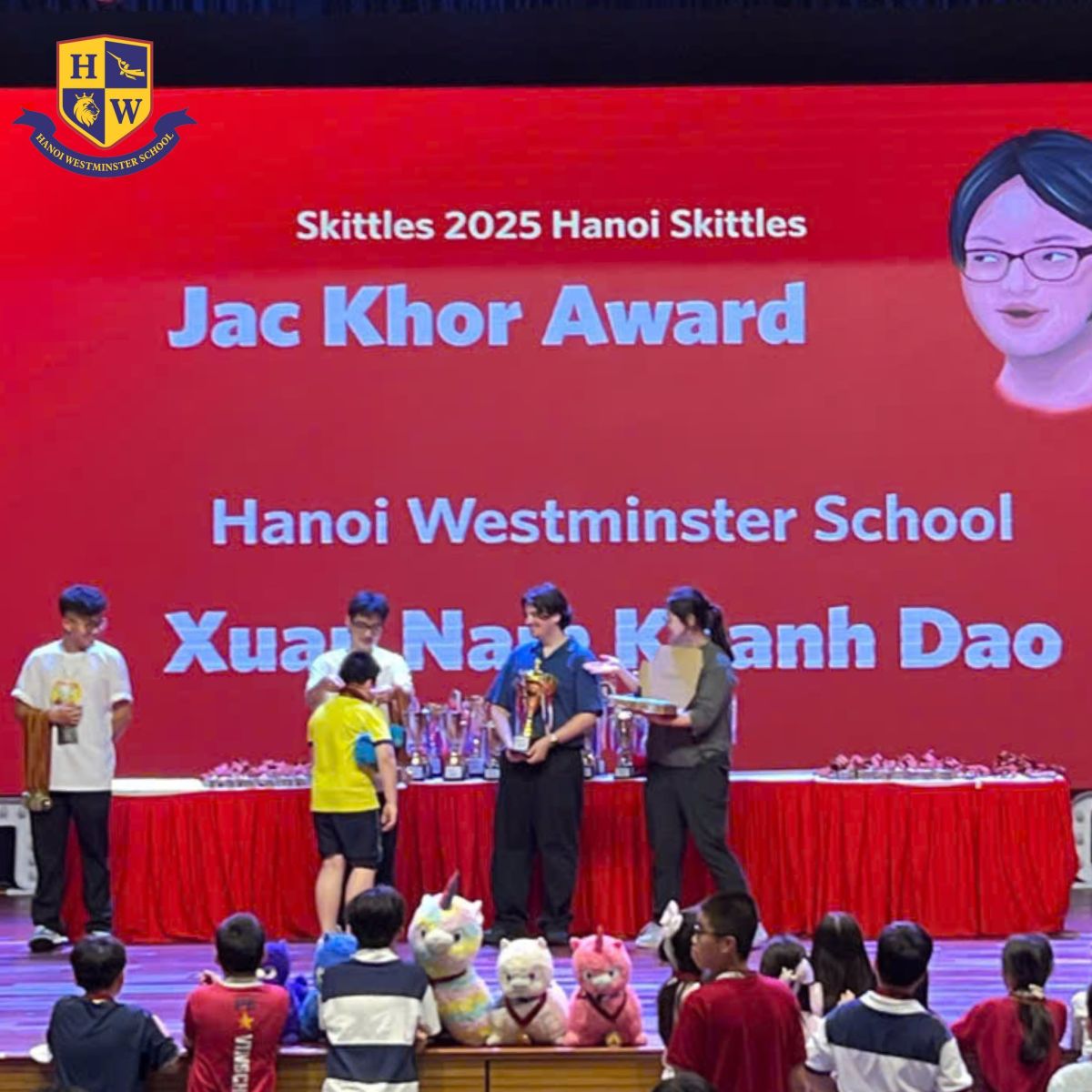 Bạn Đào Xuân Nam Khánh lớp 5Cam2 Giải thưởng Jac Khor dành cho học sinh có kiến thức sâu rộng nhất của phần thi Scholar's Challenge trong World Scholar's Cup- Hanoi Skittles 2025.