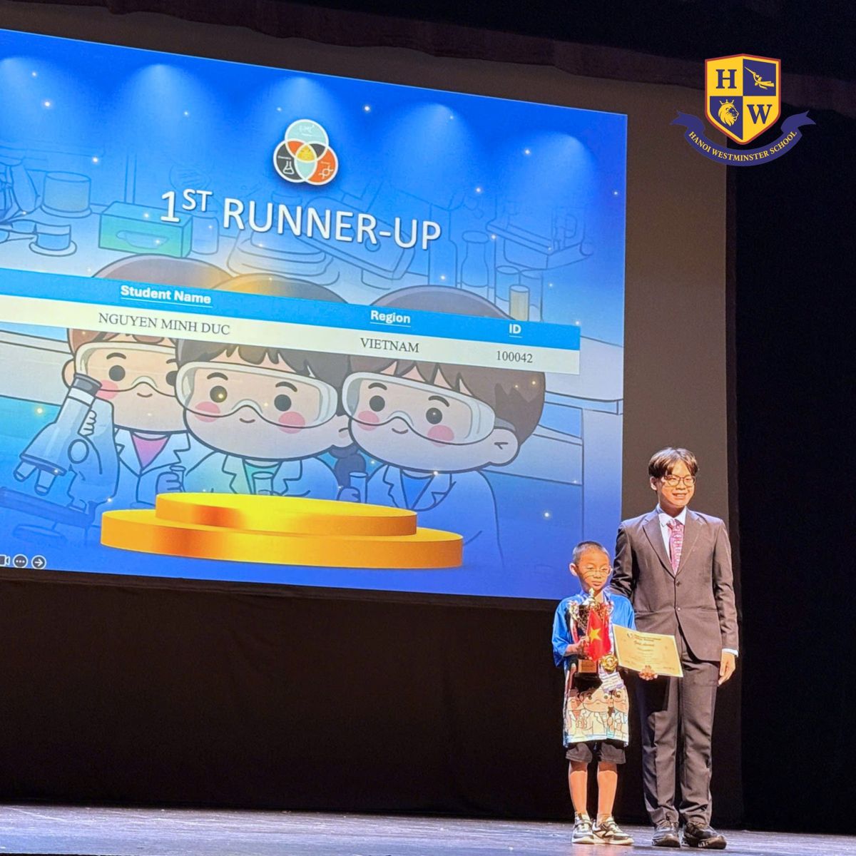 Bạn Nguyễn Minh Đức lớp 5Cam1 đạt Cúp Á quân trong cuộc thi Khoa học HKISO 2025 tại Singapore.